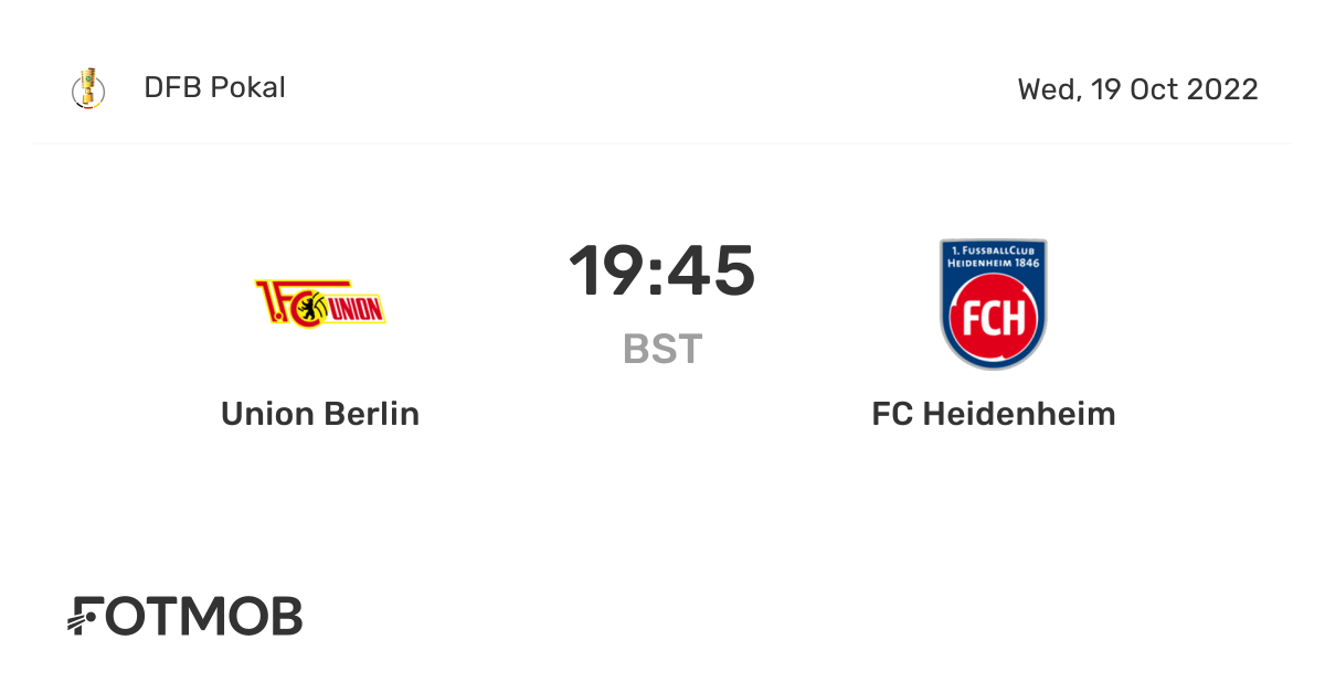 FC Heidenheim starting on 19 Oct 2022 at 1845 UTC at An der alten Forsterei stadium Berlin city Germany. FC Union Berlin und der 1. FC Heidenheim Alle Begegnungen und Statistiken im Überblick.